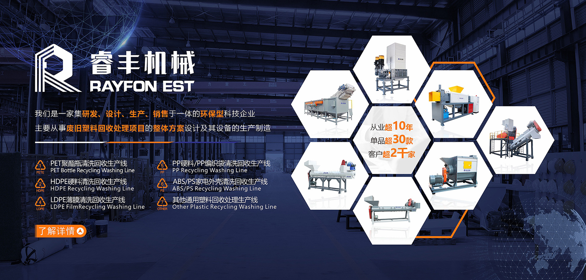 湖北睿豐環保科技有限公司是一家集研發、設計、生產、銷售、售后服務于一體的工業型企業,始終致力于固廢精細化處置和固廢資源化處置,經營范圍寬廣,成套生產線包括輸液瓶(袋)回收處理、HW49危廢回收處理、PET聚酯瓶回收處理、農藥瓶回收處理、LDPE軟質薄膜處理、PP軟質類塑料處理以及日雜料回收處理等,單機設備包括單雙軸撕碎機、脫水機、輸液瓶橡膠分離機、塑料粉碎機、塑料風選分離機、PET瓶脫標機和液壓打包機等,設備數量超20種,且可根據客戶實際需求提供個性化定制服務,為冶金、化工、建材、材料等一眾領域旗下的工程項目提供了諸多成套的優質設備,為我國危廢資源回收和處置的環保事業做出了不可磨滅的貢獻。